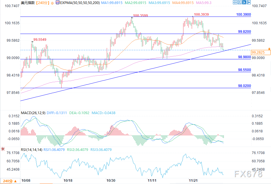 若价格明确跌破趋势线,将削弱整体技术结构,下看99.00关口,随后是98.55支撑位。目前该指数维持中性立场,走势方向取决于其在当前支撑位附近的反应。